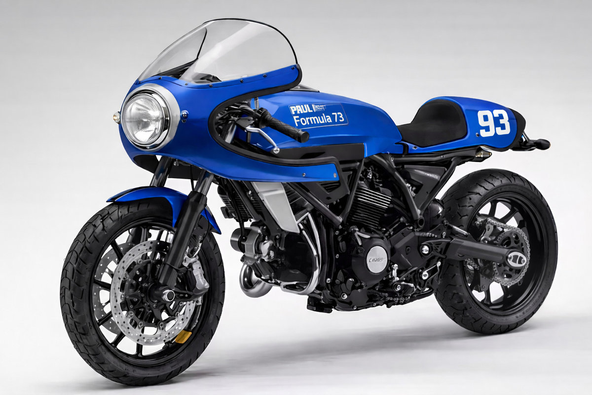 En 2026 Ducati celebrará su centenario y, entre otras cosas, comercializará esta Ducati Formula 73 basada en su Scrambler. Será un homenaje a la mítica 750 SS, la moto que salvó a la marca en los años 70, y con la que Paul Smart ganó las 200 Millas de Imola.