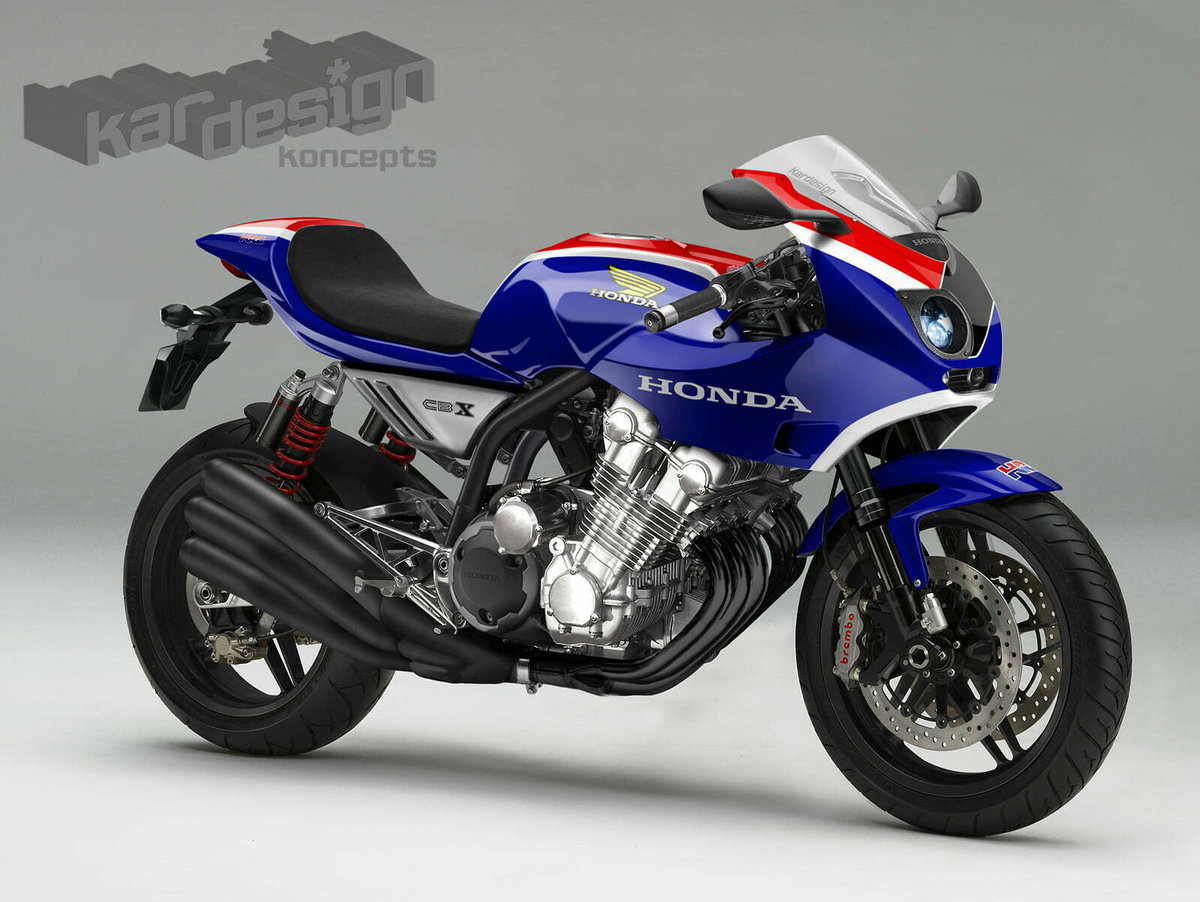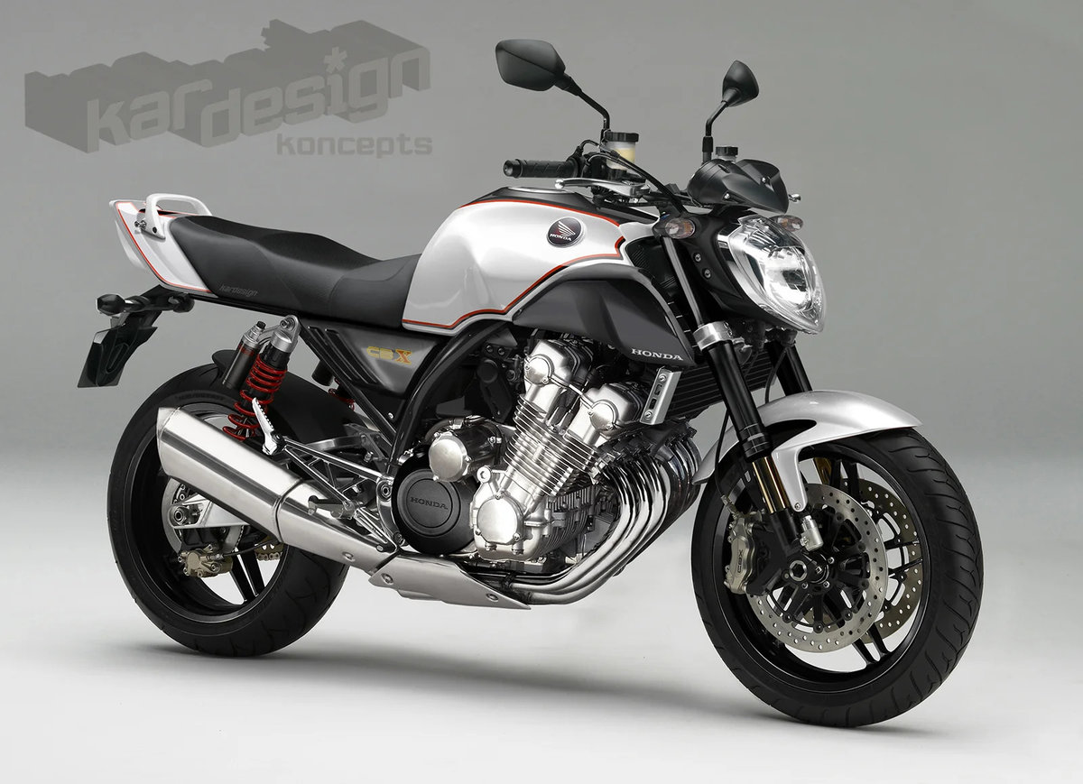El primer diseño es una Honda CBX1000 Roadster, en la que la batería de seis carburadores Keihin de 28 mm ha dado paso a un sistema de inyección electrónica. El motor, que se sigue utilizando como elemento portante, entrega 150 CV. Las suspensiones son una horquilla invertida y dos amortiguadores traseros con botella de gas separada firmados por Showa. Se detiene gracias a dos discos delanteros de 320 mm mordidos por pinzas radiales. El enorme y musculoso depósito lleva a cada lado una entrada de aire para refrigerar la culata.