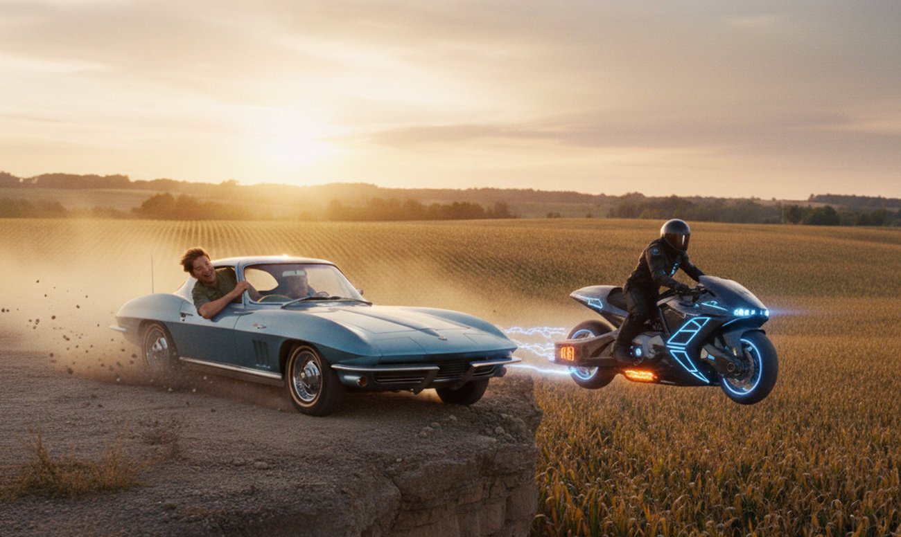 Al ver el vídeo de la Honda Outlier Concept me ha venido a la cabeza la escena de la película Star Trek (2009). Un jovencísimo James T. Kirk, todavía niño, roba el Corvette Stingray de su padrastro y luego es perseguido por un policía (que no queda claro si es un humano o un robot) en una moto voladora.