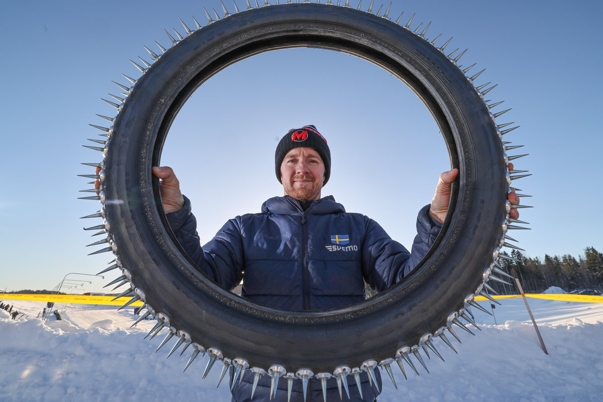 Para morder el hielo, los neumáticos van provistos de clavos que tienen una longitud de 30 mm. El neumático delantero puede llevar hasta 140 clavos por 200 el trasero. Ambas ruedas van completamente carenadas para proteger a los pilotos de los clavos. Debajo del mono suelen llevar protecciones reforzadas con kevlar o acero para evitar que los clavos destrocen el cuerpo en caso de un percance