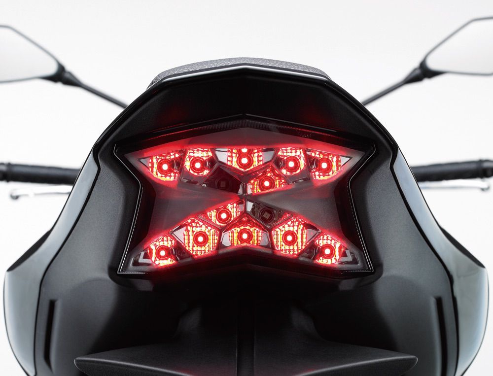 El faro trasero mantiene el logo "Z", aunque ahora con otro diseño. Los demás componentes de la moto, los hereda de la Z800, como las llantas o el faro delantero (con ligeros cambios).
