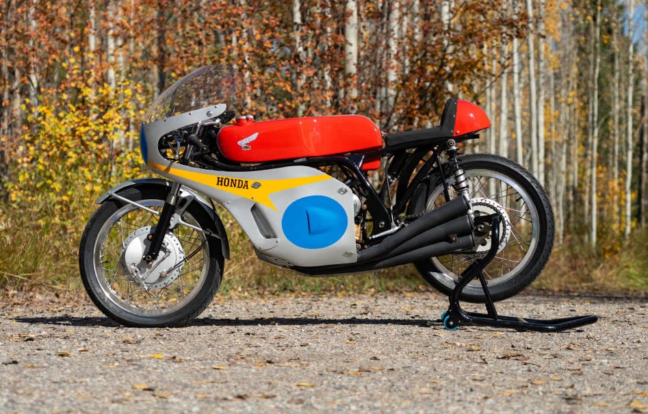 La unidad que se subastará fue construida por el especialista británico George Beale en cooperación con Honda. Para ello se emplearon los planos originales del fabricante japonés. Es la tercera de 10 réplicas construidas, idénticas a la Honda RC174 de 1967.