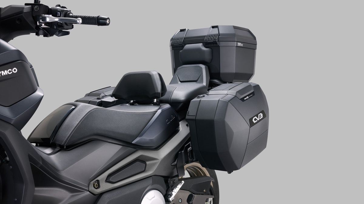 KYMCO ofrece para el nuevo CV3 575 maletas que crecen y baúles versátiles, uno rectangular y otro más compacto. Descubre cómo multiplicar la capacidad de carga según las diferentes necesidades y situaciones.