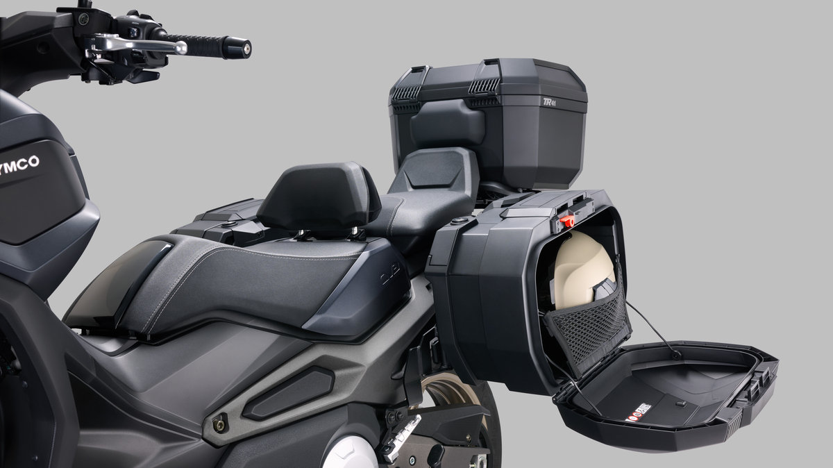 El KYMCO CV3 575, el nuevo scooter deportivo de 3 ruedas, llega con una serie de opciones de almacenamiento que permiten ampliar de manera significativa su capacidad de carga. Ya sea para una escapada de fin de semana o para las necesidades diarias.