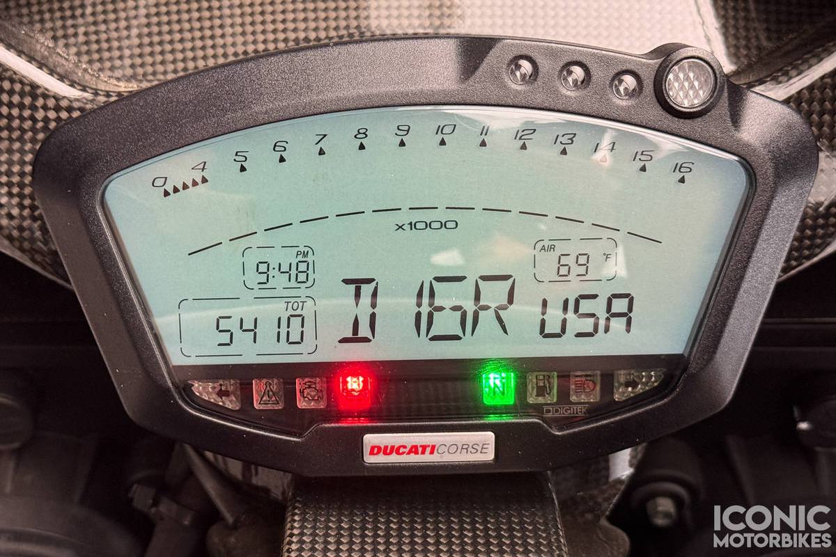 Llantas forjadas Marchesini, neumáticos específicos de Bridgestone para esta moto y piezas de carbono para todo el carenado así como otros detalles propios de una moto tan exclusiva, completan el conjunto. El chasis es el usado entonces por Ducati, un multitubular en acero, y el cuadro de instrumentos es el mismo que usaban Stoner y compañía en sus motos de carreras. Indica que es un modelo original para venta en Estados Unidos con 5400 millas recorridas (algo más de 8.000 kilómetros).
