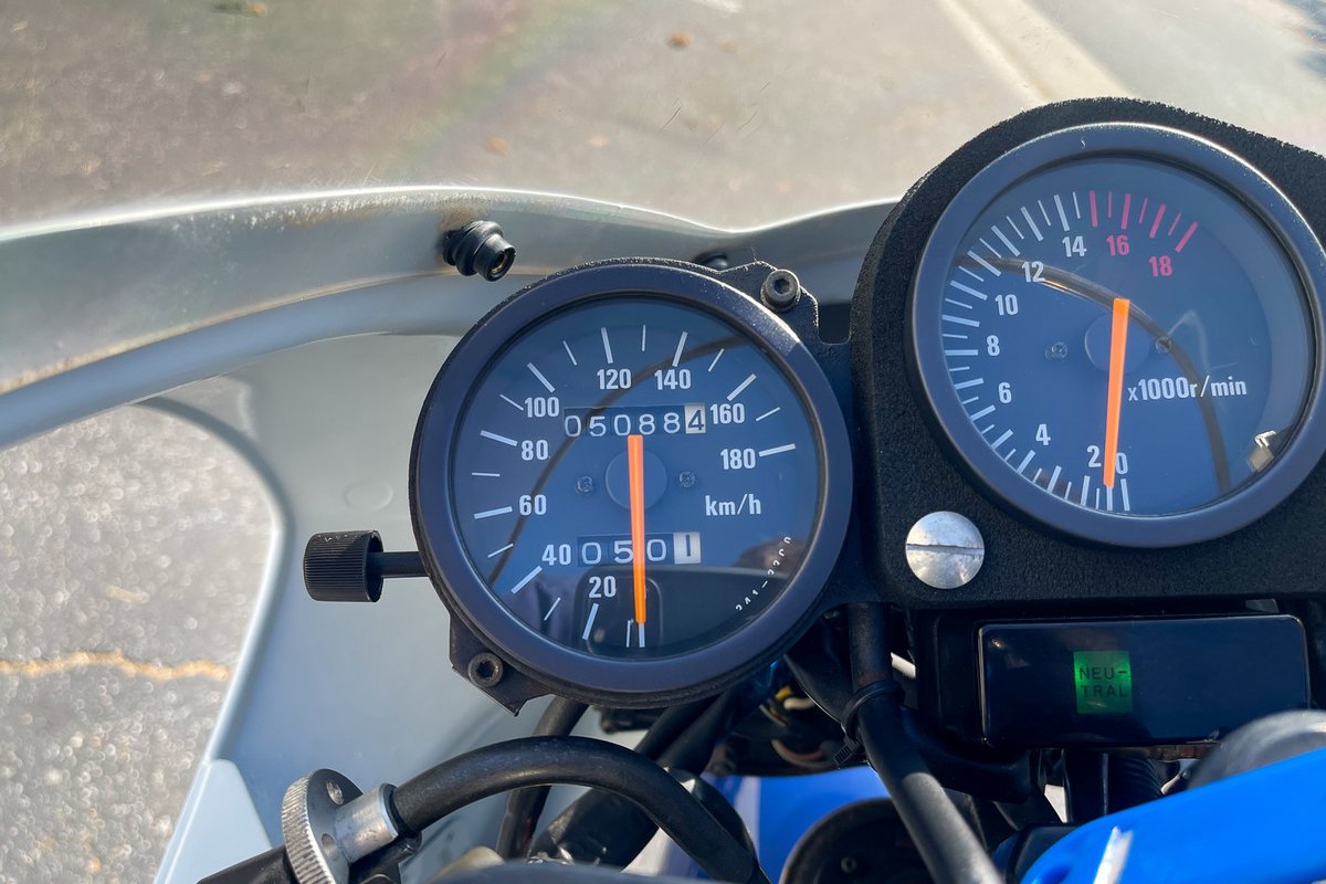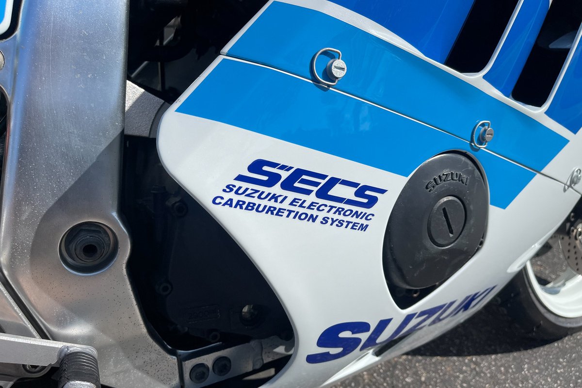 Volviendo a la GSX-R ésta tiene la línea roja del cuentavueltas en 15.000 rpm y apenas 5000 kilómetros en el marcador. Es la versión SP, con mejores suspensiones y frenos, y antes de ponerla a al venta en Iconic Motorbikes la han desmontado y puesto a punto a fondo, además de montar neumáticos nuevos. La moto apenas presenta algún arañazo en el carenado pero en general muestra muy buen estado, incluso el depósito de gasolina está impecable por dentro. Una joyita para fans de las Suzuki GSX-R clásicas que, si pudiéramos comprar, no sabemos si dejaríamos expuesta en el salón, o dedicaríamos a tandas en circuito… ¿tú qué harías con ella?