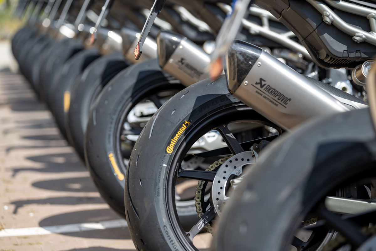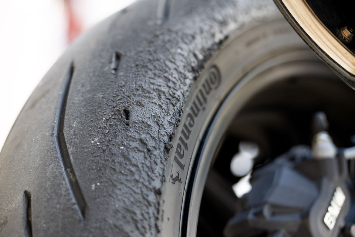 Nos dividieron en dos grupos de 10 pilotos y disponíamos de cuatro tandas de diez minutos cada grupo, así que decidí continuar en la primera tanda con la XR que había llevado por carretera, a ver qué tal se defendía en pista. Primera sorpresa: pregunté a los responsables de Continental si era necesario bajar presiones para rodar la tanda de 15 minutos en pista, donde seguro que los neumáticos se sobrecalentarían. Con una sonrisa me dijeron que no era necesario ni bajar presiones ni utilizar calentadores, solo que en la primera vuelta fuera un poco más tranquilo.