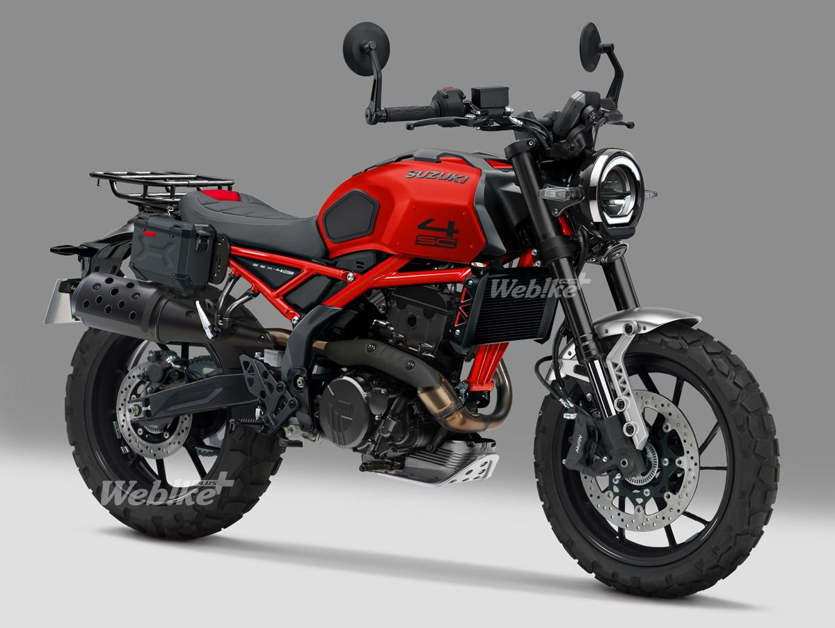 La Suzuki Scrambler 400 sería un modelo urbano dirigido a los poseedores del carnet A2. Gracias a su acertada imagen podría atraer a un buen número de aficionados. Pero no solo sería una cara bonita, sino que su vertiente práctica quedaría patente con la parrilla y las alforjas. Solo faltaría un precio asequible para que la Suzuki Scrambler 400 contase con argumentos para competir en el disputado segmento de las motos de cilindrada media.