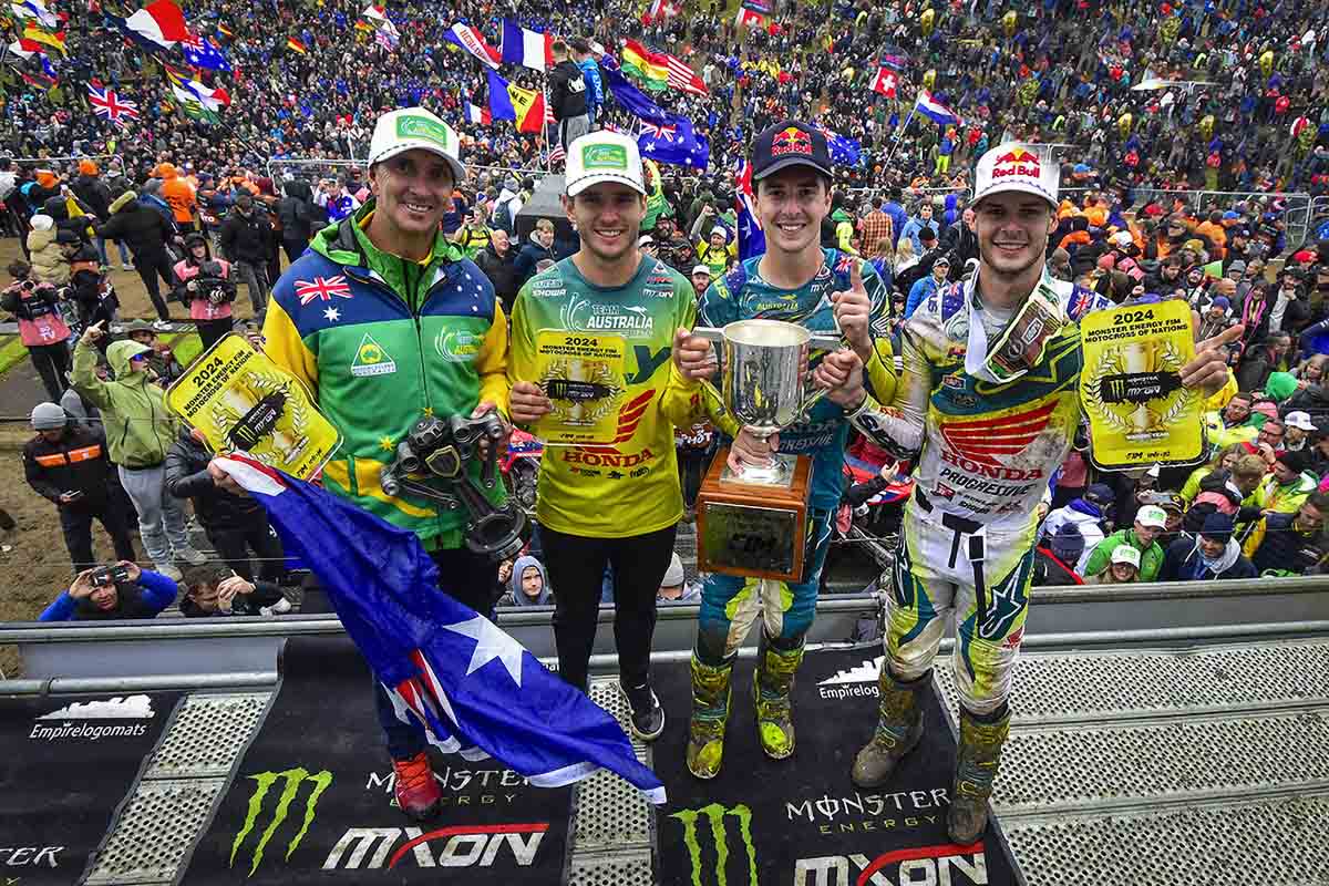 El defensor del título llega desde el otro lado del mundo: Australia. Con los hermanos Jett y Hunter Lawrence al frente, los aussies repiten la fórmula que les dio la gloria en 2024. Jett competirá con el dorsal #1 en la categoría MXGP y buscará repetir sus exhibiciones pasadas, mientras Hunter afrontará la categoría Open en un trazado que conoce bien y en el que ya ha firmado victorias. Completa la formación Kyle Webster en MX2, en un bloque sólido y equilibrado.