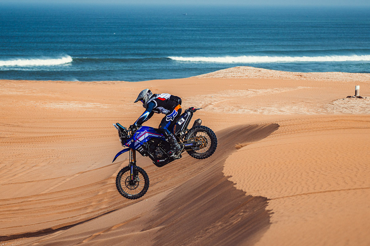 El debut del Ténéré Yamaha Rally Team en la décima edición del Carta Rallye no ha podido ser más sólido. La estructura japonesa, en colaboración con Riders for Health, ha colocado a sus tres pilotos dentro del top cinco de la general en la primera etapa, con Alessandro Botturi tercero, Kevin Gallas cuarto y Gautier Paulin quinto. Por delante de ellos, el triunfo fue para los pilotos oficiales de Sherco, Lorenzo Santolino, seguido por Bradley Cox.