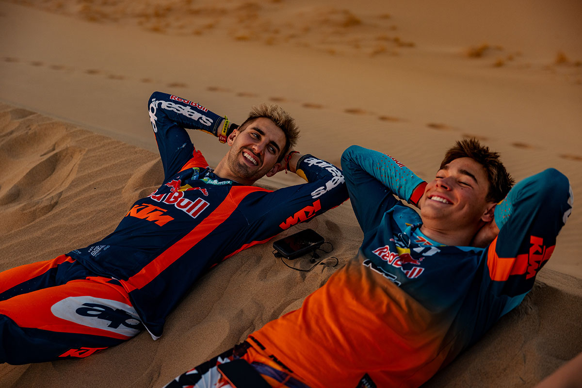 La nota más amarga del día para KTM la puso Sanders. El australiano había alcanzado al líder de la etapa y empezaba a sumar bonificaciones cuando una fuerte caída tras un salto de duna lo dejó dolorido y con lesiones. Aun así, logró llevar su KTM 450 RALLY hasta meta en 16ª posición y, tras pasar controles médicos, fue autorizado a continuar. El propio Sanders reconocía que el objetivo ahora es gestionar el dolor y terminar el rally, manteniendo una mentalidad positiva pese a la decepción.