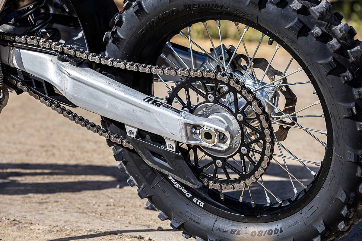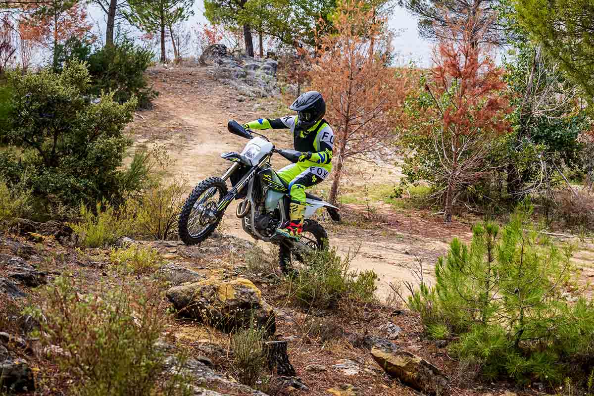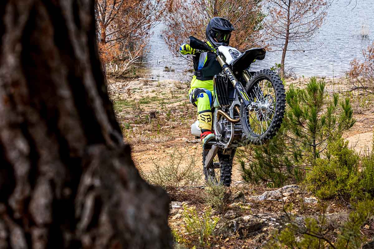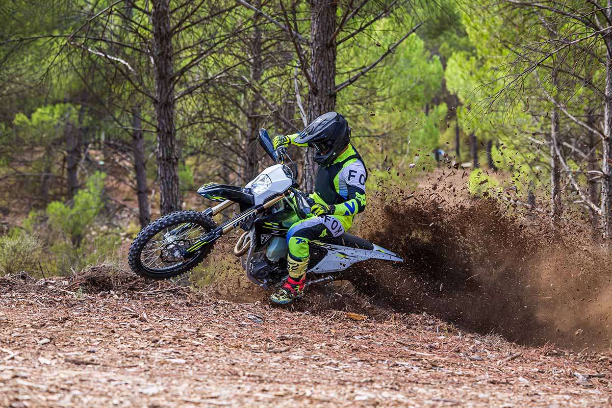 El chasis es el mismo que el de la motocross, pero todo lo que rodea la moto ha sido rediseñado para ganar tracción, estabilidad, sensibilidad y comodidad. La TF 450 E no se parece tanto a su hermana de MX como uno imaginaría.
