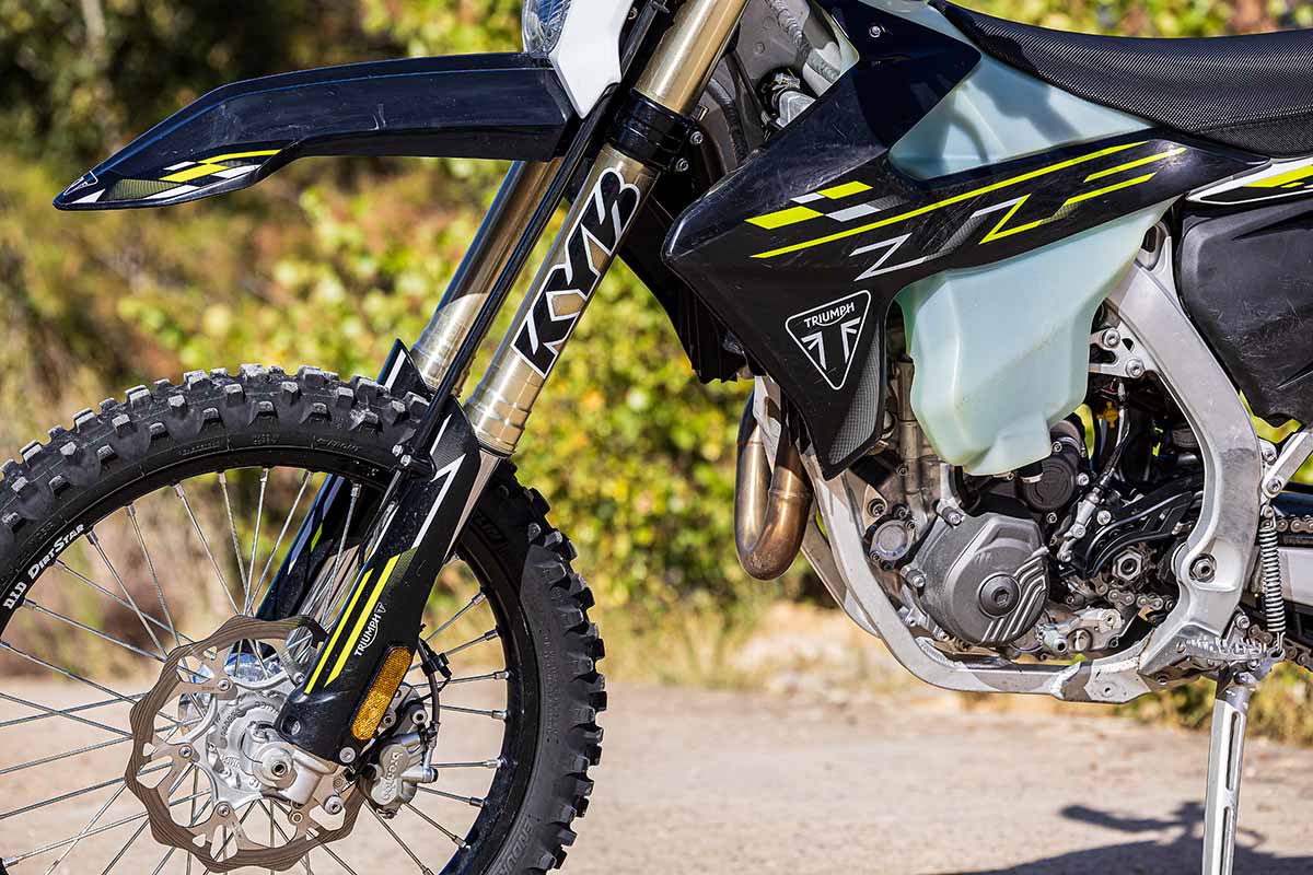 Aunque usa el mismo material Kayaba que la MX, Triumph ha recortado la horquilla 10 mm y ha modificado completamente el valvulado de ambos ejes.