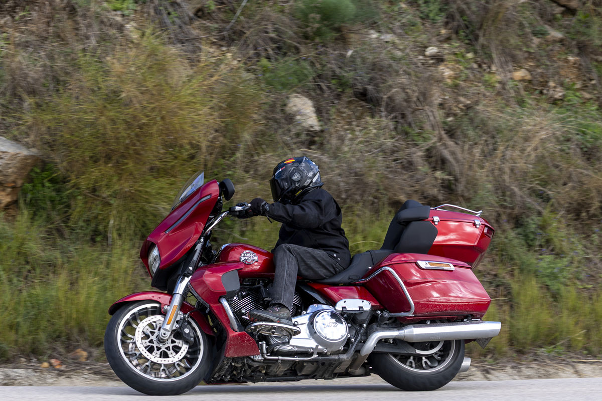 Siempre me ha dejado perplejo el comportamiento de estas grandes H&D, son motos enormes, de más de 400 kg, a su favor tienen que son bajas de asiento y su peso está muy bien centrado. Una vez que te pones en movimiento y vas a 5 km/h parece que han perdido el 50% de sus kilos. De todas formas, para manejar una de estas Harley tienes que mantenerte en forma, moverlas en parado cuesta un riñón y la pata de cabra que dicen que es de seguridad y no se puede caer la moto, tienes que cogerla el truco y confiar en ella.