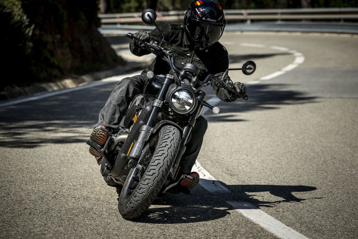 Fue la última en la que monté y, lo confieso, la que más me apetecía, sin duda por su espectacular motor V4, una rareza y más en esta categoría. Son 496 cc y casi 50 CV y 42 Nm, de par, que incorpora acelerador electrónico y un sistema que desconecta los cilindros traseros cuando esta al ralentí para reducir emisiones y consumo (y calor al piloto, supongo). Sin duda que es una propuesta muy singular en el mercado de las cruiser, cuando la pones en marcha, suena como los ángeles, pero si he de ser sincero, me decepcionó un poco pues me esperaba más potencia (sí ya sé que son los 35 kW del carnet A2…) y sensaciones más contundentes. También he de decirte que la moto tenía muy pocos kilómetros, estaba poco rodada y la sensación es que el motor no estaba demasiado fino, sobre todo al dar el golpe de gas para reducir marchas. Sospecho que le hicieran falta más kilómetros y pasar una primera revisión.