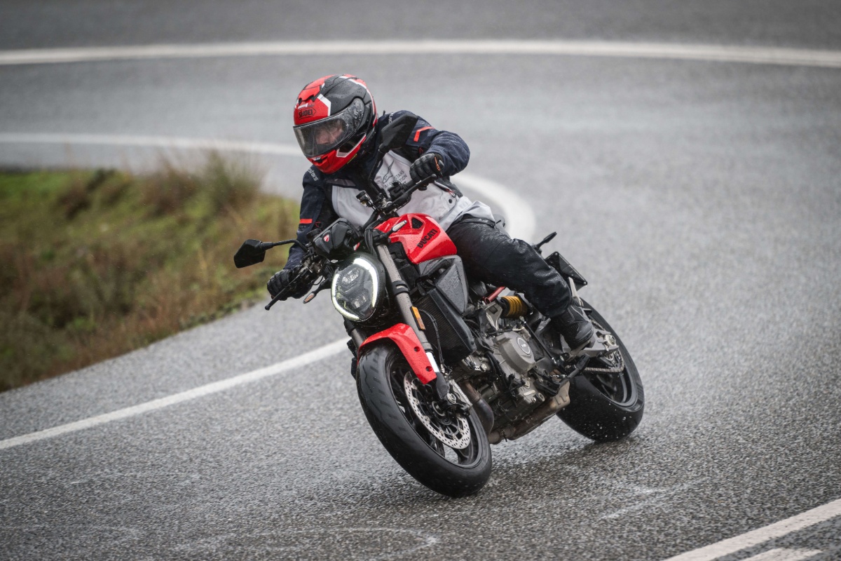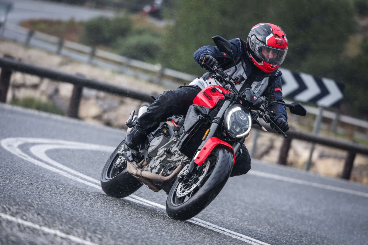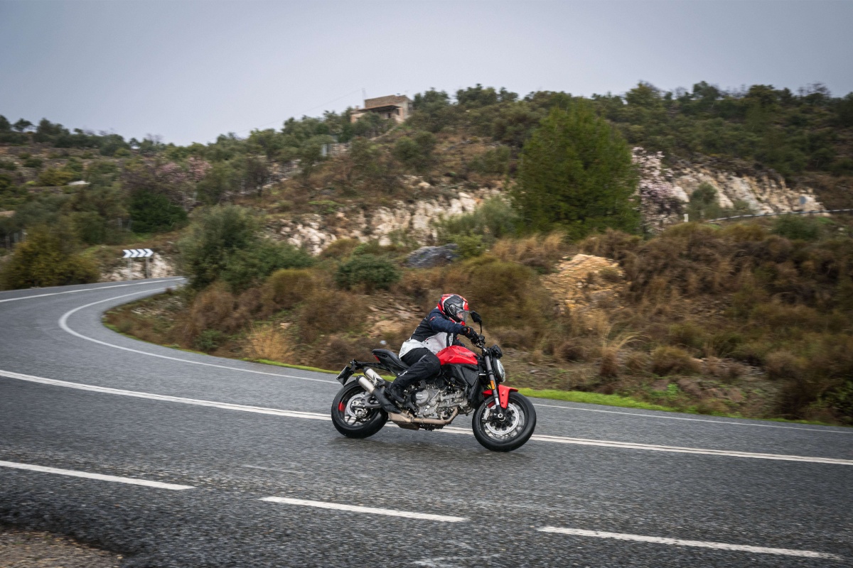 Como ya hemos adelantado, la prueba se realizó en condiciones de mojado, un escenario en el que se agradece especialmente el completo paquete electrónico disponible orientado a la seguridad. La Monster 2026 equipa de serie plataforma inercial IMU de seis ejes, ABS en curva, control de tracción, control de caballito y control del freno motor.