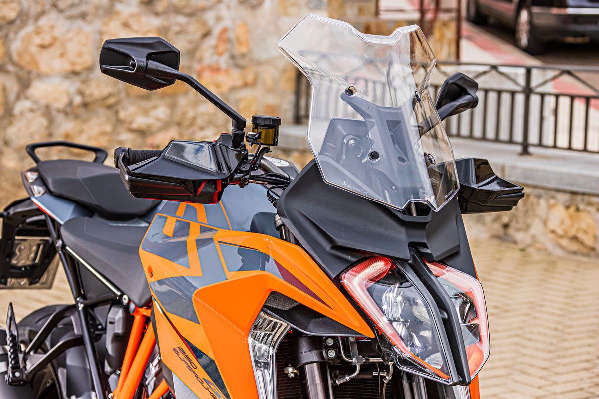 En uso tranquilo es una moto muy amable, algo que no me esperaba, lo confieso. Y lo es en todos los sentidos: tacto suave, pocas vibraciones, ¡hasta gasta poco! El desarrollo final es bastante largo (unos 30 km/h en sexta para cada 1000 rpm de motor) y eso más el buen ajuste de KTM hacen que sea fácil estar por debajo de 6 litros. Y es un V2 de 175 CV: cuando los buscas los encuentras, ojo, así que enhorabuena porque eso significa que podrás espaciar tus visitas a las gasolineras (que ya dan casi miedo) tranquilamente más allá de los 300 km.