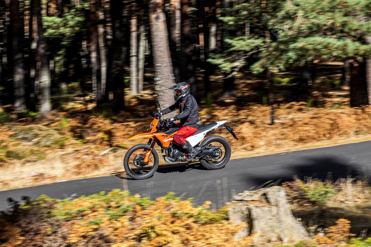 Eso sí, con reglajes de serie, si te calientas en enduro llegan los topes de suspensión. No es un drama; es coherente con su enfoque. Un piloto de alto nivel off-road echará en falta más potencia o respuesta más inmediata; para la gran mayoría, la entrega es suficiente y aprovechable.