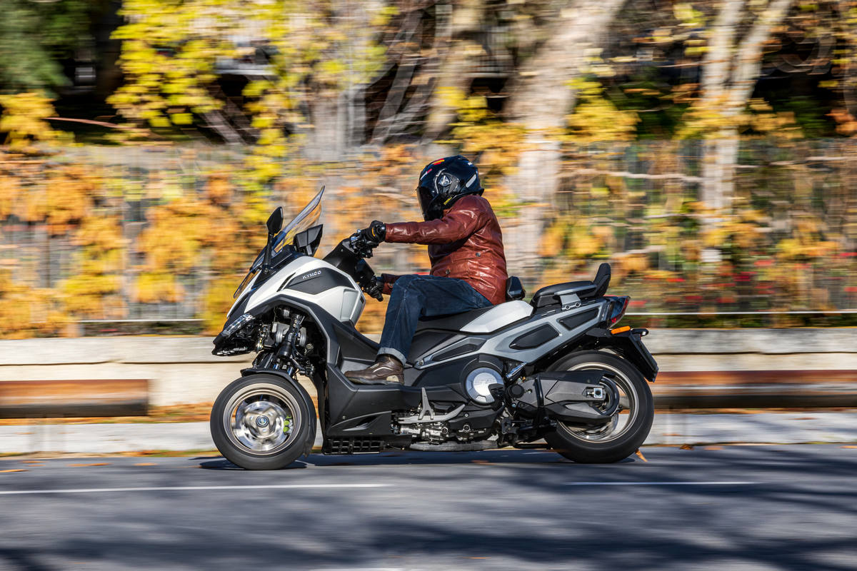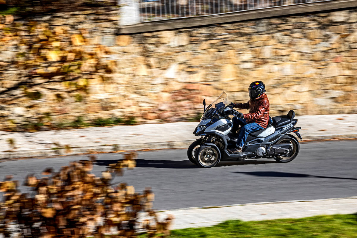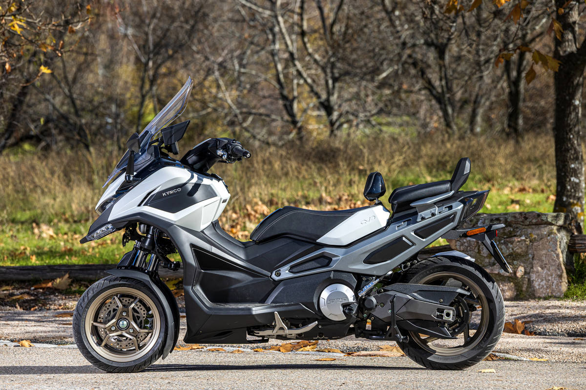 Eso de añadir una rueda más al eje delantero fue un invento de Piaggio con su MP3, que por su enorme éxito en Francia y sobre todo en Paris, se fueron sumando Peugeot, Yamaha y luego Quadro que incluso llego a presentar un scooter de cuatro ruedas inclinable. Con este CV3 KYMCO presenta un producto claramente Premium para superar sin paliativos a la competencia consolidada dentro de este mercado, utilizando una tecnología de vanguardia, un diseño moderno y una gran calidad de componentes.