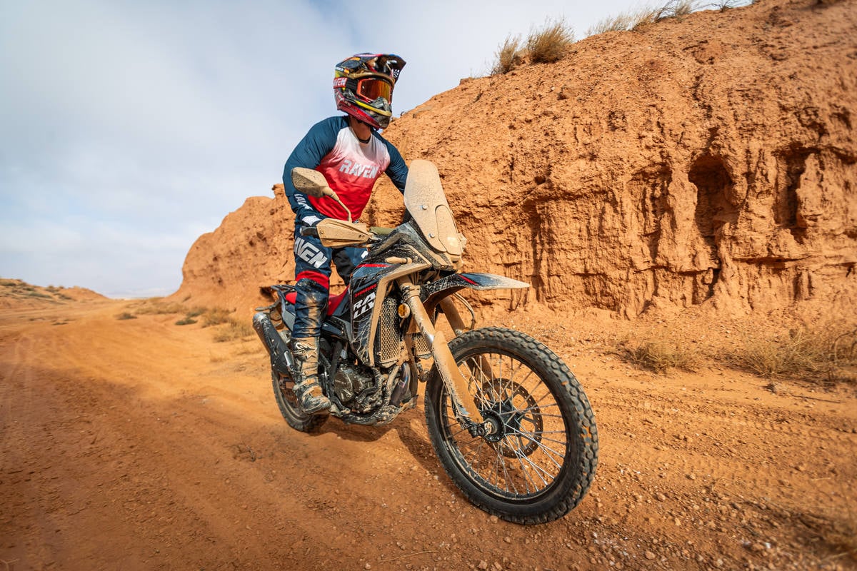 En protecciones, dejaría solo la parte frontal de los cubremanetas (la moto trae esa opción fácil) y montaría espejos plegables. Para desierto, los mousses son tentadores: detrás lo ideal sería 120, pero ahora mismo lo que hay es 140/80-18 (algo sobredimensionado para esta moto); delante, el 90/90-21 funciona de maravilla. Si la idea es viajar con equipaje, la parrilla vuelve a ser necesaria.