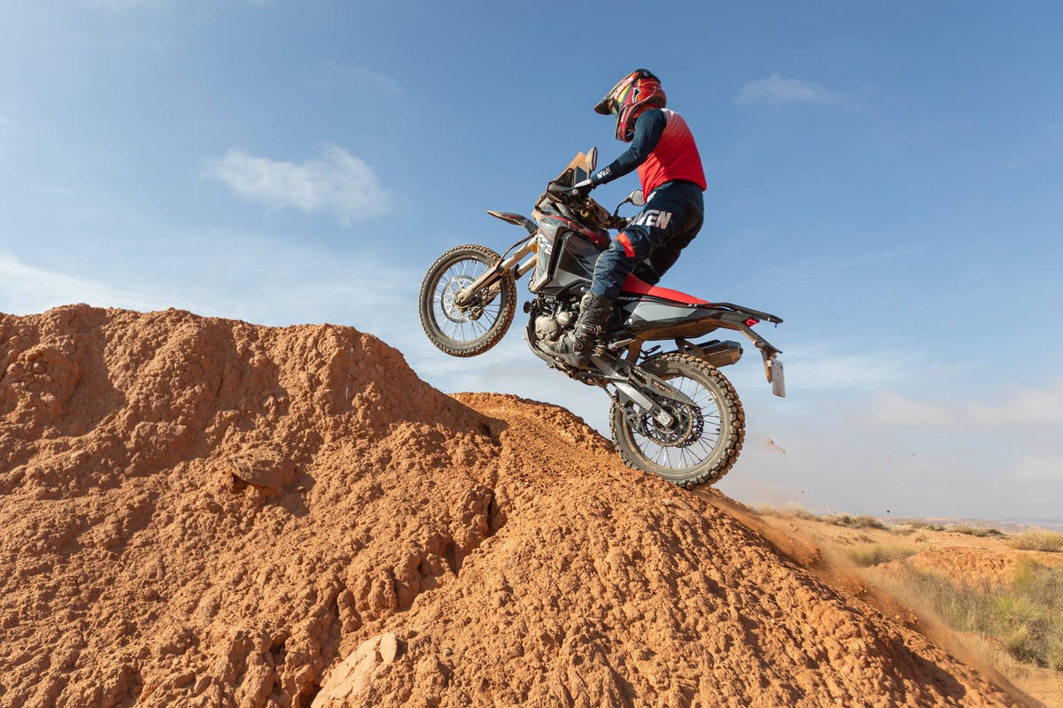 Esta vez tocaba irnos a probar hasta Zaragoza: Monegros, polvo y pistas de la Baja Aragón como patio de juegos para la Rieju Aventura Rally 307. El perfil: una trail ligera, para carnet A2, ágil para escapadas de un día, viajes de varios, sin penalizar en los enlaces largos… por menos de 5000 euros. Se prevén rivales muy pronto en esta categoría y la pelea será dura, pero quien da primero da dos veces.