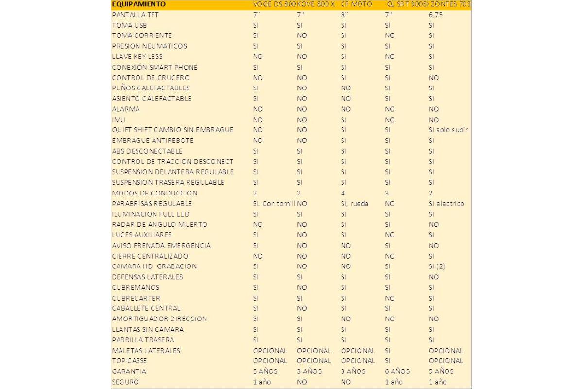 Si además de todo esto, lleva llave keyless, doble cámara de grabación con disco duro de diez gigas, faros auxiliares, control de velocidad de crucero, siete tomas USB, radar de ángulo muerto, pantalla eléctrica, calefacción en el asiento, en los puños etcétera, me parece muy bien y es bienvenido. Pero si todo ello supone que la moto pese 30 kg más, yo ya no lo quiero. Bueno, no quiero hacer un texto que parezca la Enciclopedia Espasa, así que voy ya con cada una de las motos...