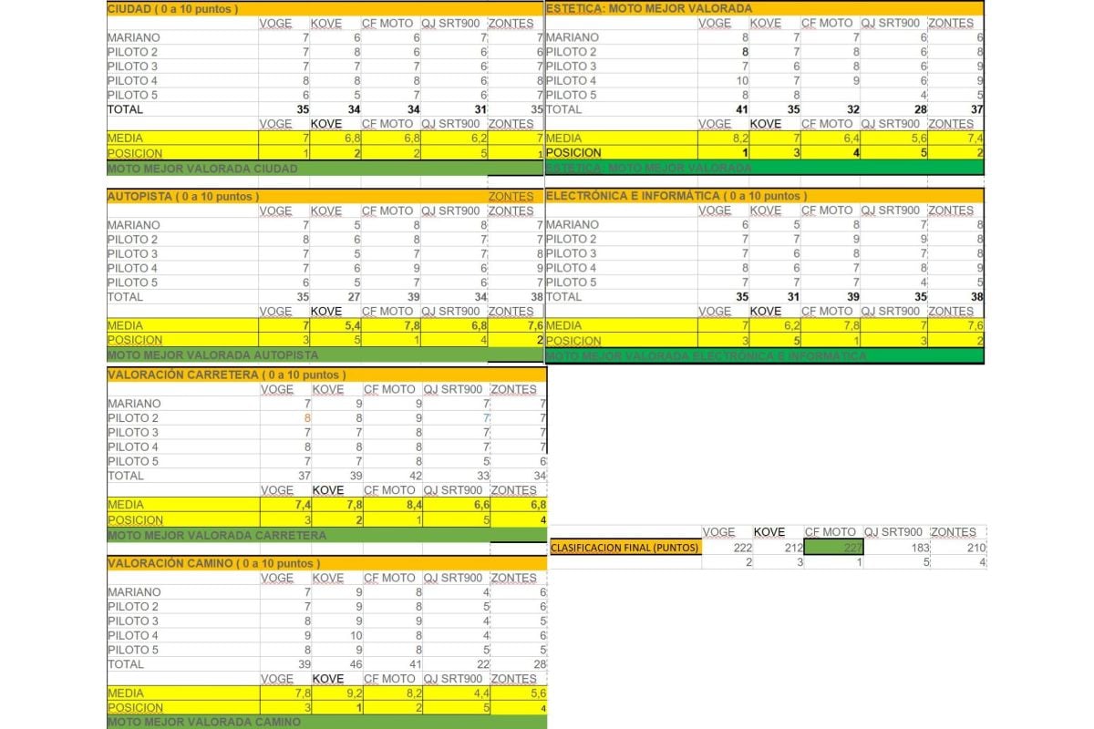 Además te adjuntamos las tablas de especificaciones y valoraciones finales de los cinco probadores, para que veas que no todos coincidimos en nuestras opiniones...