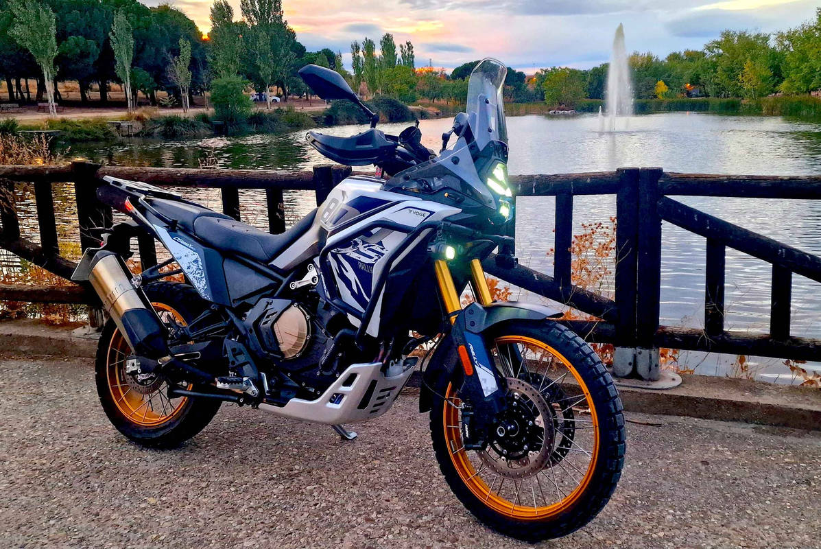 En conjunto resulta una moto completa y equilibrada que comparte con la KTM 790 Adventure prácticamente todos sus elementos, pues no hay que olvidar que CFMoto fabrica en China esta moto austriaca. La CFMoto 800 MT X va realmente bien en todos los terrenos, con una electrónica de primer nivel y una arquitectura gemela a su hermana austriaca, con el depósito de combustible en la parte inferior de 22,5 l y la posibilidad de aumentar su autonomía con un depósito adicional de 8 l en la parte trasera.
