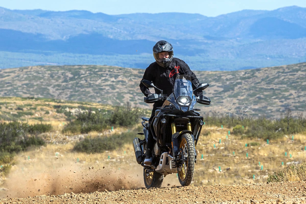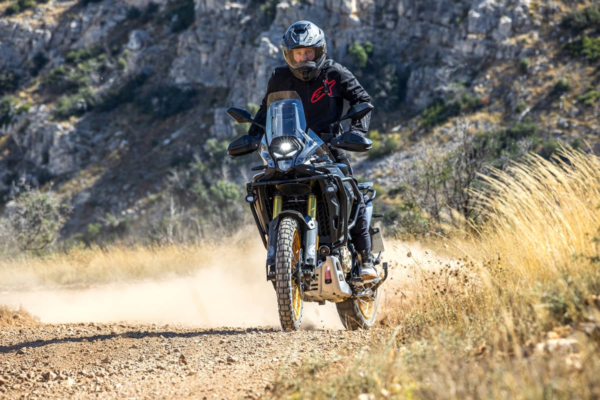 Lo numerosos trucos Off-road: El guardabarros delantero se ajusta en altura: útil si montas neumático con más taco o te toca ruta con barro. Un detalle sencillo que evita atascos y roces. Tanto la palanca de freno como la de cambio son plegables (no se doblarían en caso de impacto con piedras); las manetas permiten ajustar el alcance al gusto y a distintas manos. El parabrisas era regulable con 4 tornillos: en ambas protege bien. Fácil de dejar a tu gusto. Los espejos son plegables: se recogen en segundos (hacia dentro en horizontal) antes de entrar en senderos; menos golpes, más tranquilidad. Guía-cadena campera: Protege la transmisión en pistas con roderas o piedras sueltas, otro detalle práctico que se agradece.