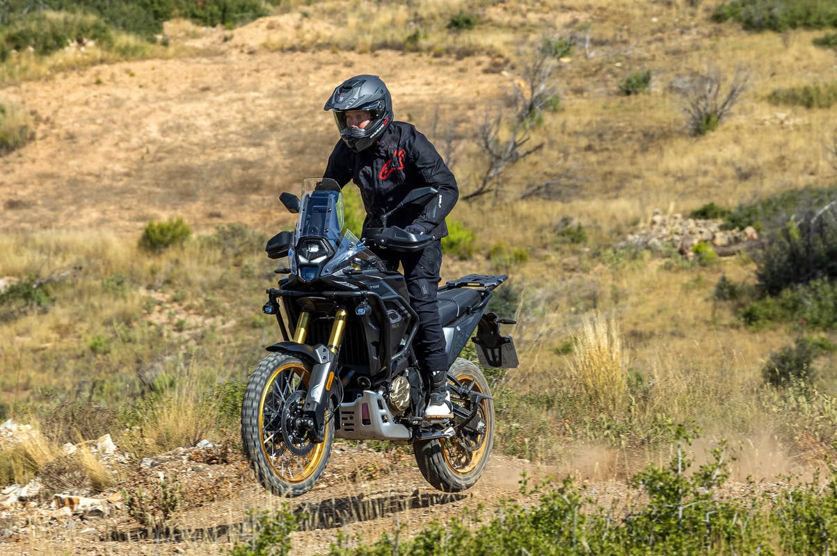 Peso, reparto y distancia libre: La marca declara 226 kg con todo el equipamiento de serie, y el peso homologado en seco es de 204 Kg. Si eliminas accesorios, el peso real podría quedarse muy interesante (apunta ideas de preparación ligera)... El reparto de masas y el centro de gravedad bajo son excelentes para carretera; en off-road agresivo la distancia al suelo puede penalizar algo… aunque el cubre-cárter de aluminio de serie protege muy bien.